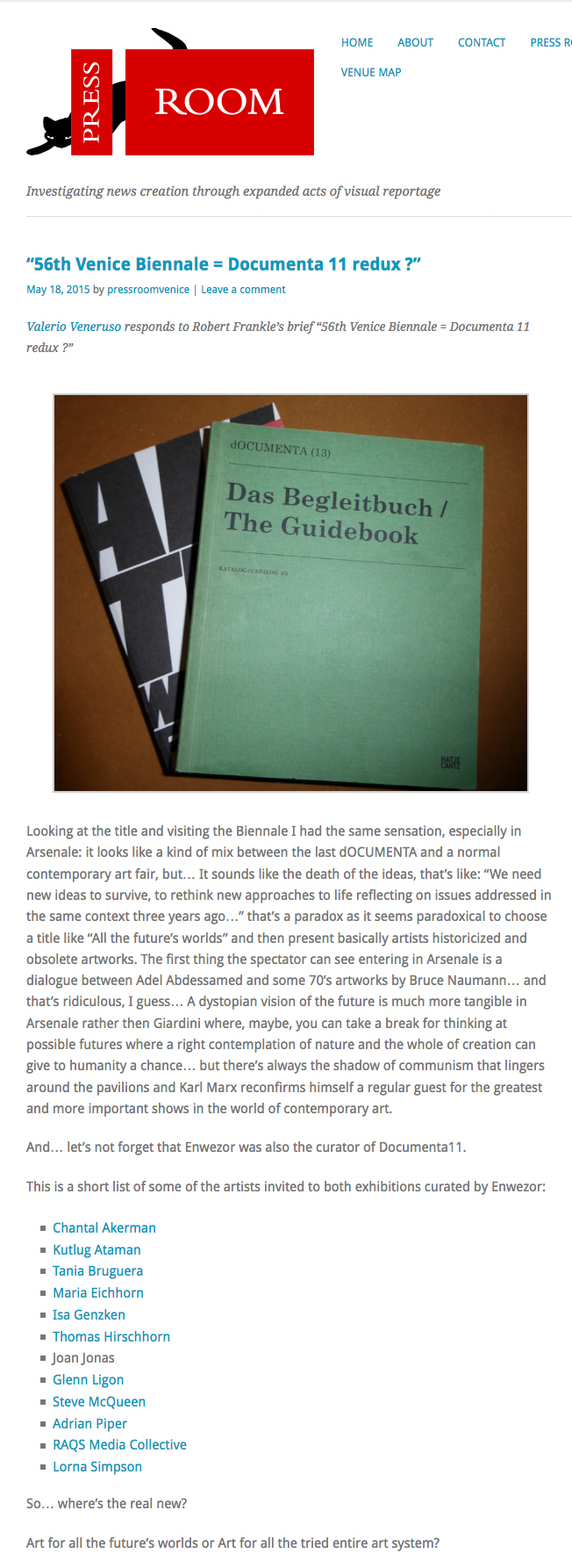 Press Room at the Venice Biennale opening 6 - 8 May 2015